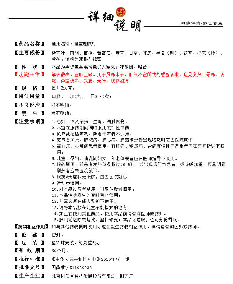 - Package Includes: 3X 60G 同仁堂 通宣理肺丸