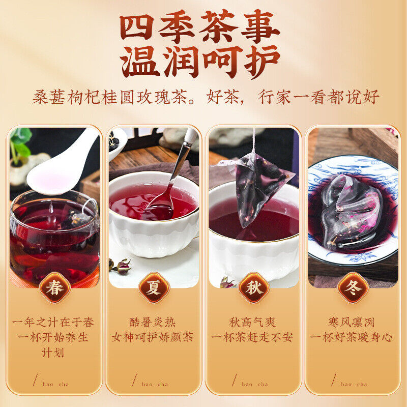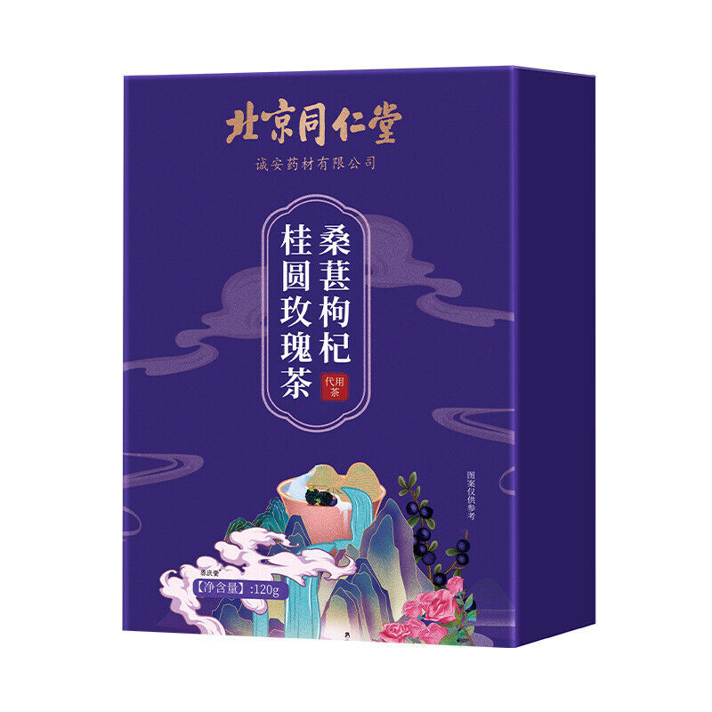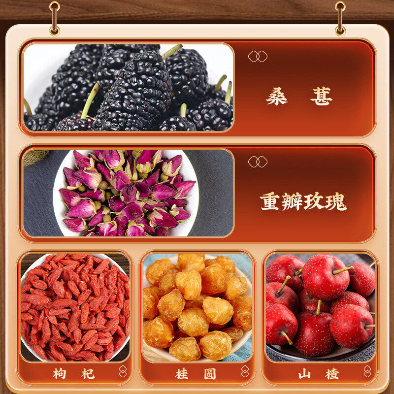 同仁堂桑葚枸杞桂圆玫瑰茶 山楂枸杞花茶滋补养生代泡花果茶120g Ton RenTang Mulberry Wolfberry longan Rose Tea