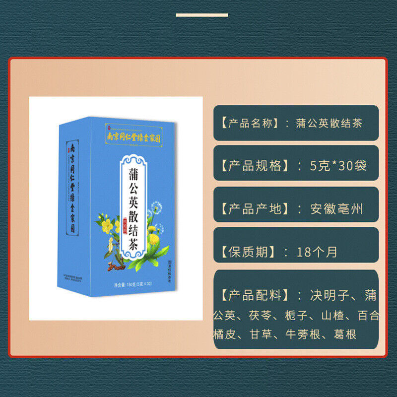 同仁堂绿金家园蒲公英百合茯苓散结茶结节通150g Tongrentang Dandelion Lily Poria Sanjie Tea