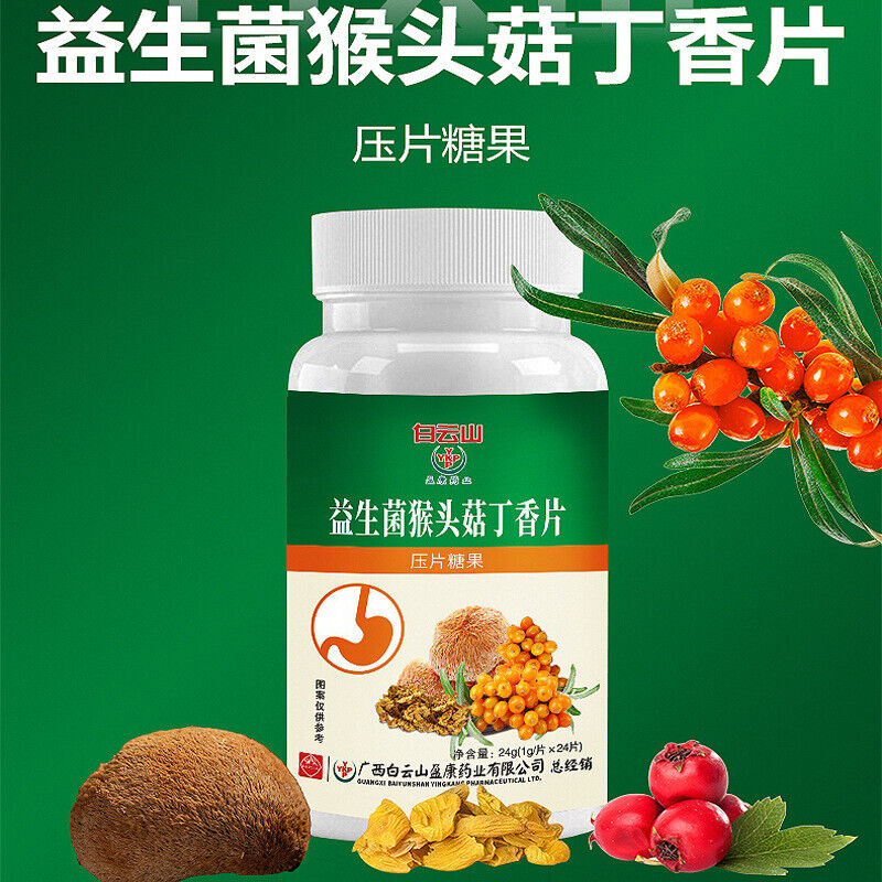 白云山益生菌猴头菇丁香片 调理肠胃 清新口气 乳杆菌沙棘果片 Probiotic Monkey Mushroom Clove Tablets