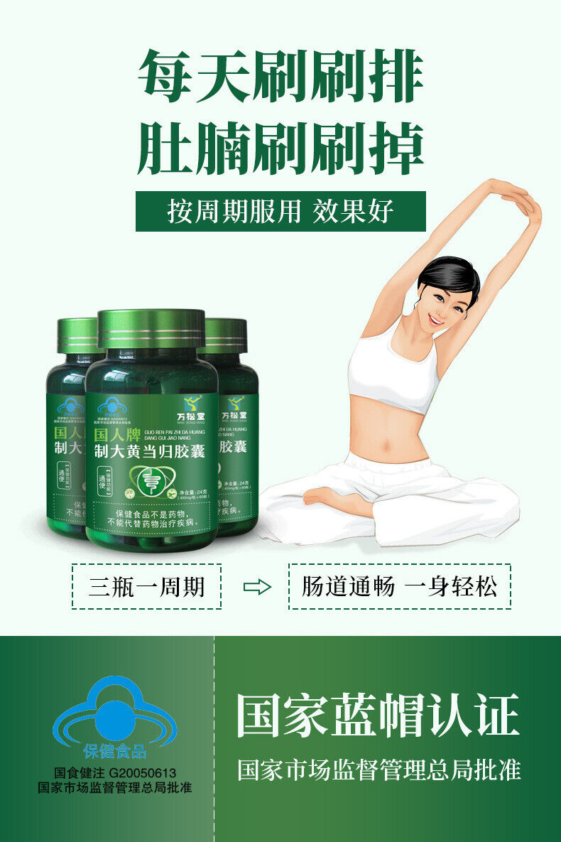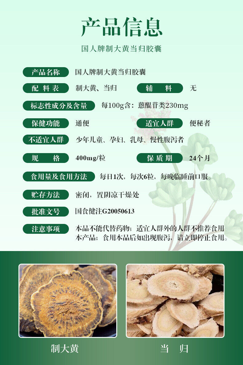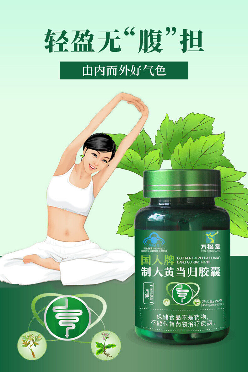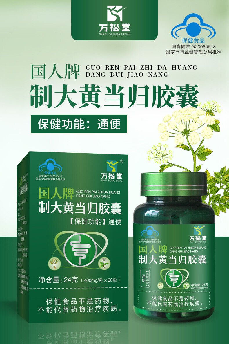 Prepared Rhubarb Angelica Sinensis Capsules 400mg*60 Capsules in Bucket 24g