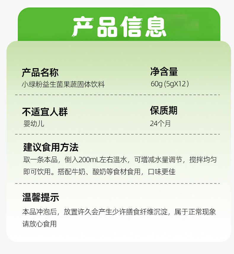 Item No.: Small green powder probiotic fruit and vegetable solid drink