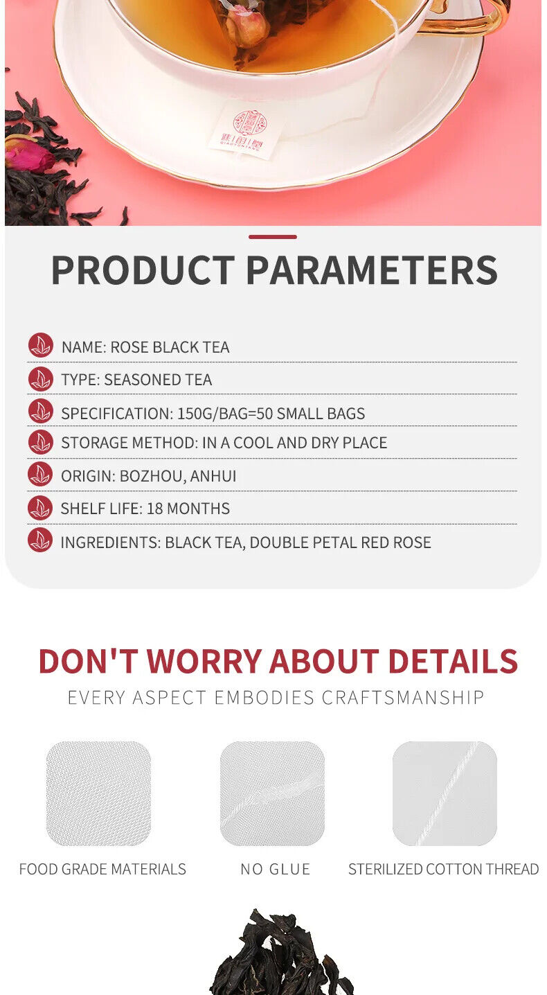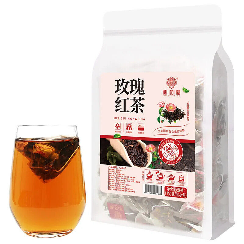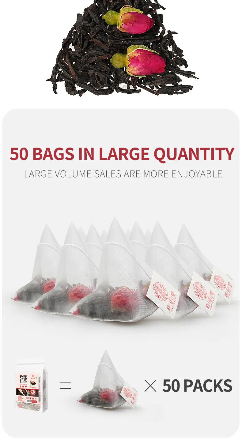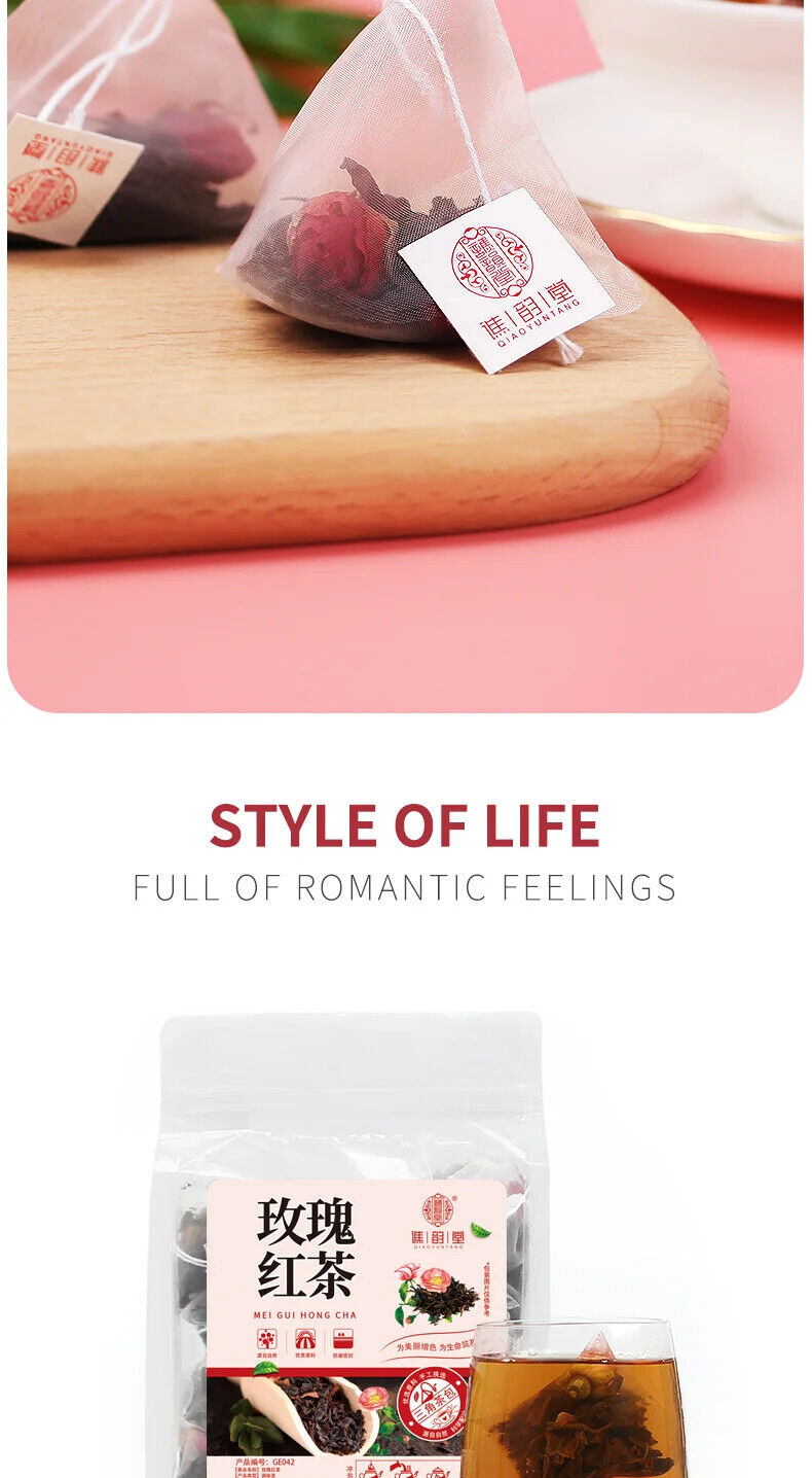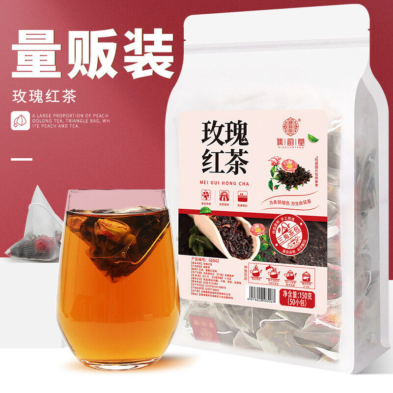 Name: Rose Black Tea Type: Seasoned Tea Specification: 150g/bag=50 small bags Storage method: in a cool and dry place Ingredients: black tea, double petal red rose This product adopts a triangular tea bag design, which can prevent tea ingredients from entering the mouth when drinking. Independent small bags are more...