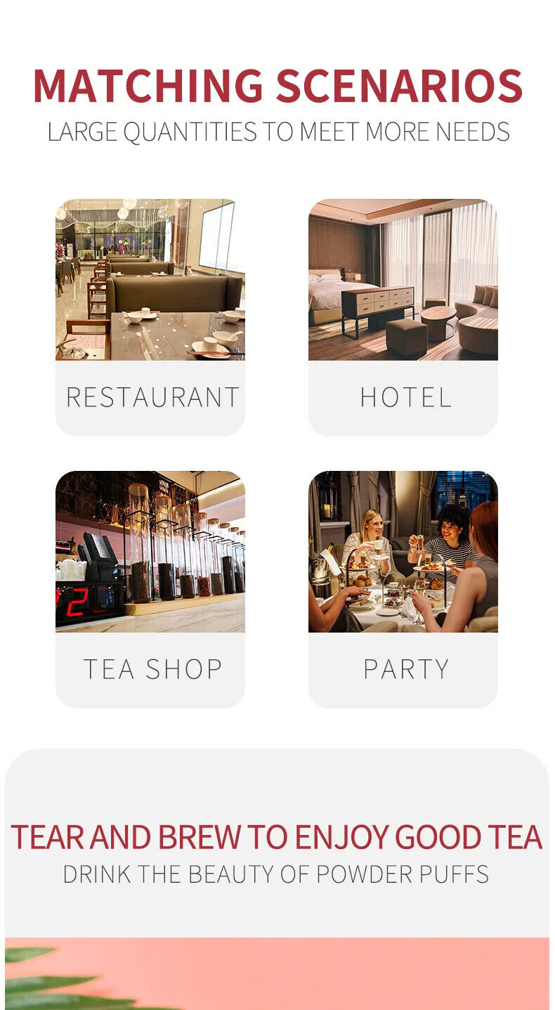 This product adopts a triangular tea bag design, which can prevent tea ingredients from entering the mouth when drinking.