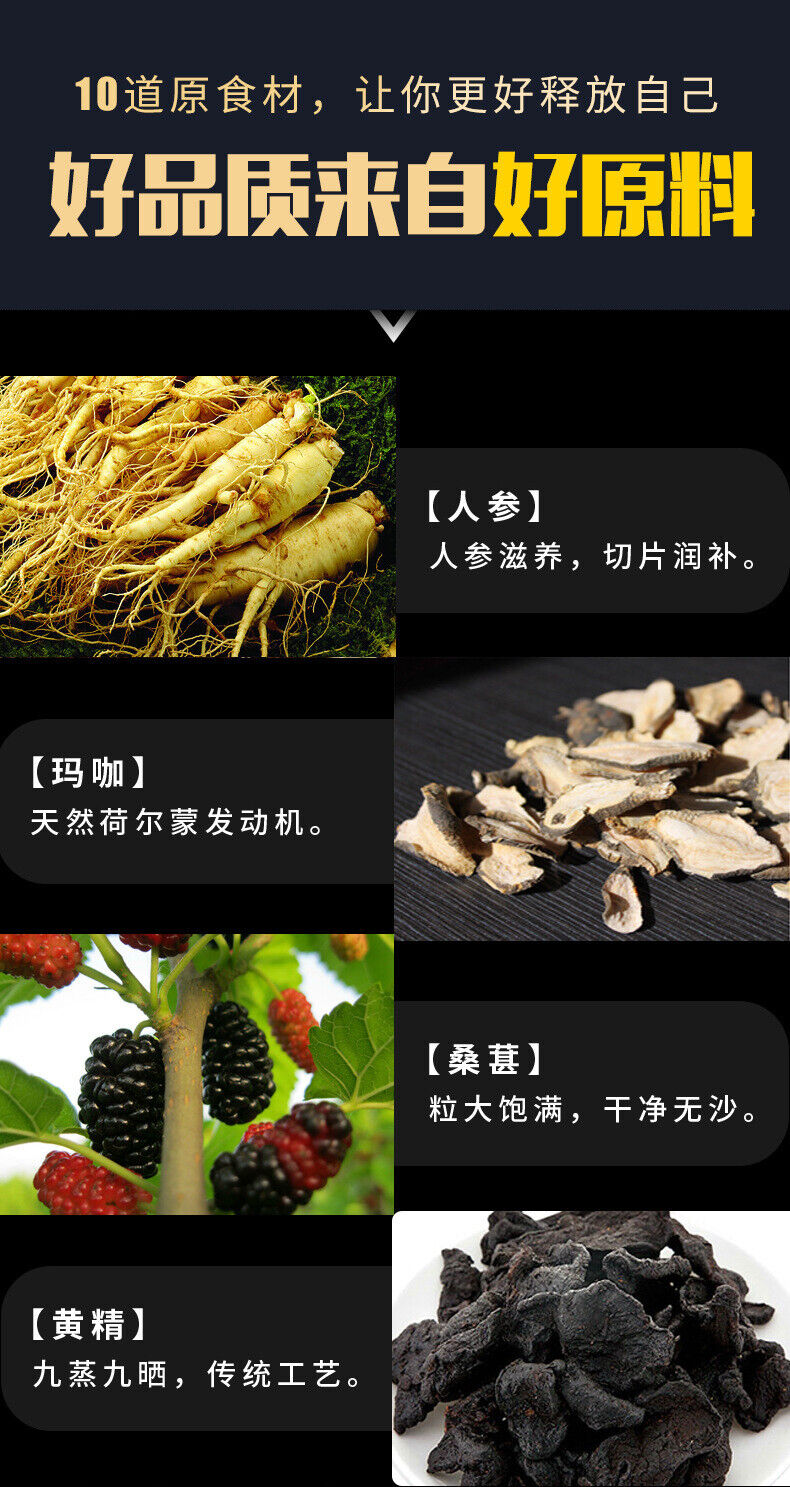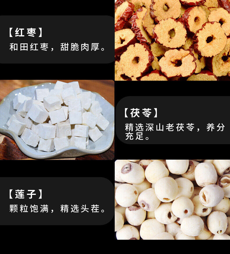 health care function: - Brand: solid root of the Hall Item: men ten treasure tea Selling Style: Packaging Raw materials and ingredients: mulberry, wolfberry, curry, yellow essence, raspberry, Poria, lotus, etc. Shelf life: more than 12 months Origin: Fujian whether gift boxed: No Production date: nearly a month Manufacturer: Fujian Solid Roots Church Biotechnology Co. Packing specification:Man Ten Treasures Tea Characteristics:No Commodity bar code:- Net content (specification):150 Whether imported:No