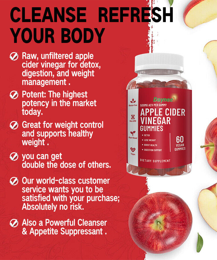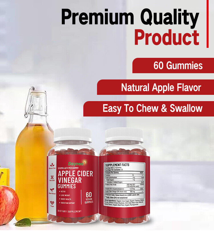 Vitamin B12 Apple Cider Vinegar Gummies Detox Boost 60 Vegan Capsules