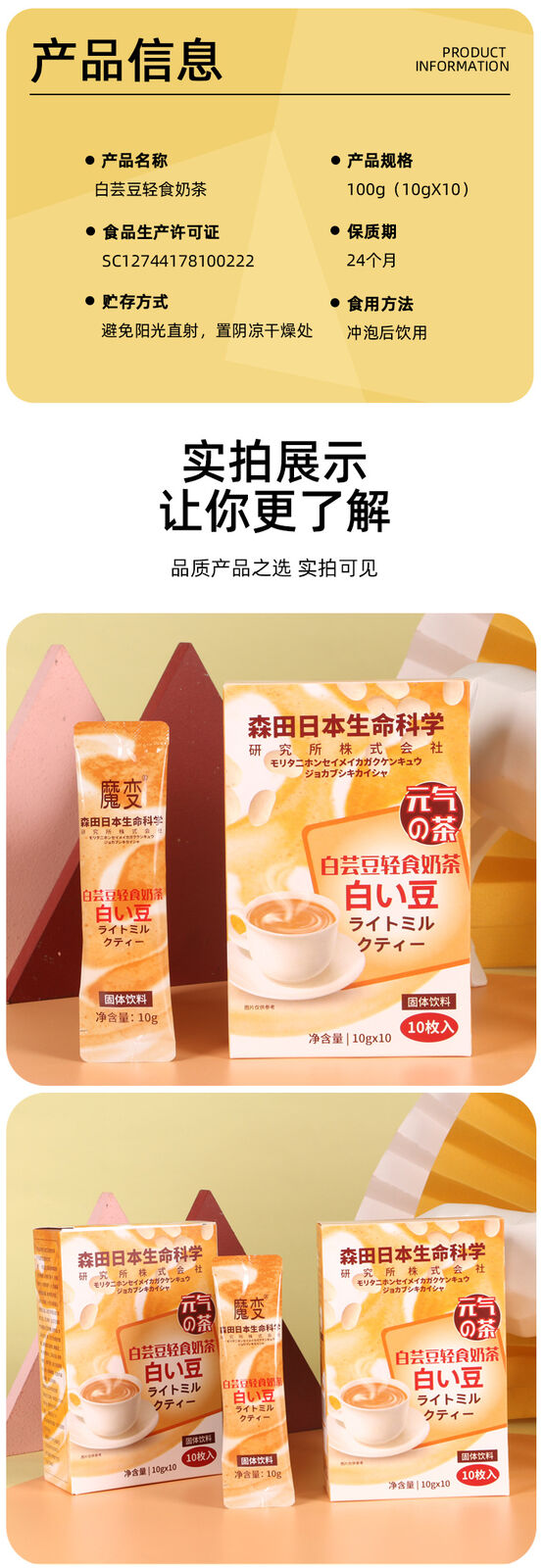 White Kidney Bean Light Bulletproof Milk Tea Solid Drink Milkshake