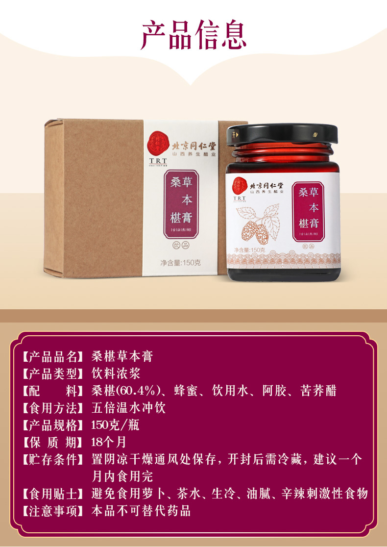 Beijing TongRenTang Mulberry Cream Genuine 北京同仁堂桑椹膏150g