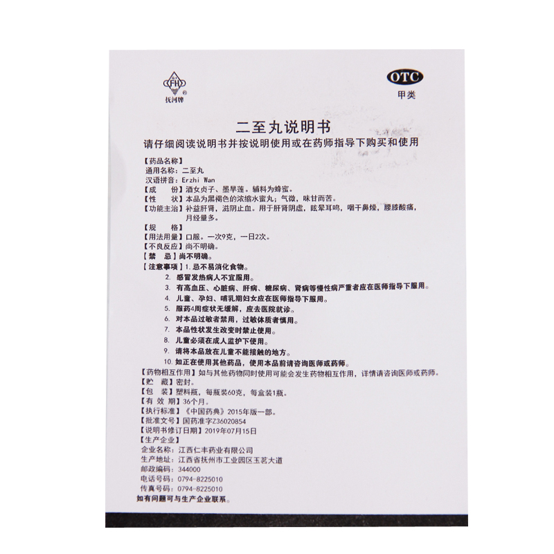 Fuhe Erzhi Pills 60g*1 bottle/box OTC 抚河 二至丸 60g*1瓶/盒 OTC