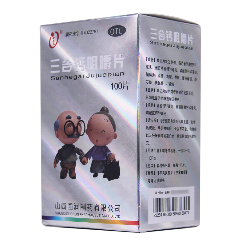 Jin Chang Xing Triple Calcium Chewable Tablets 100 tablets*1 bottle/box OTC 金长兴 三合钙咀嚼片 100片*1瓶/盒 OTC