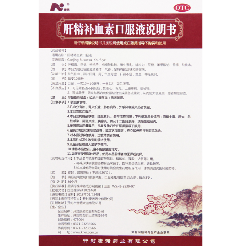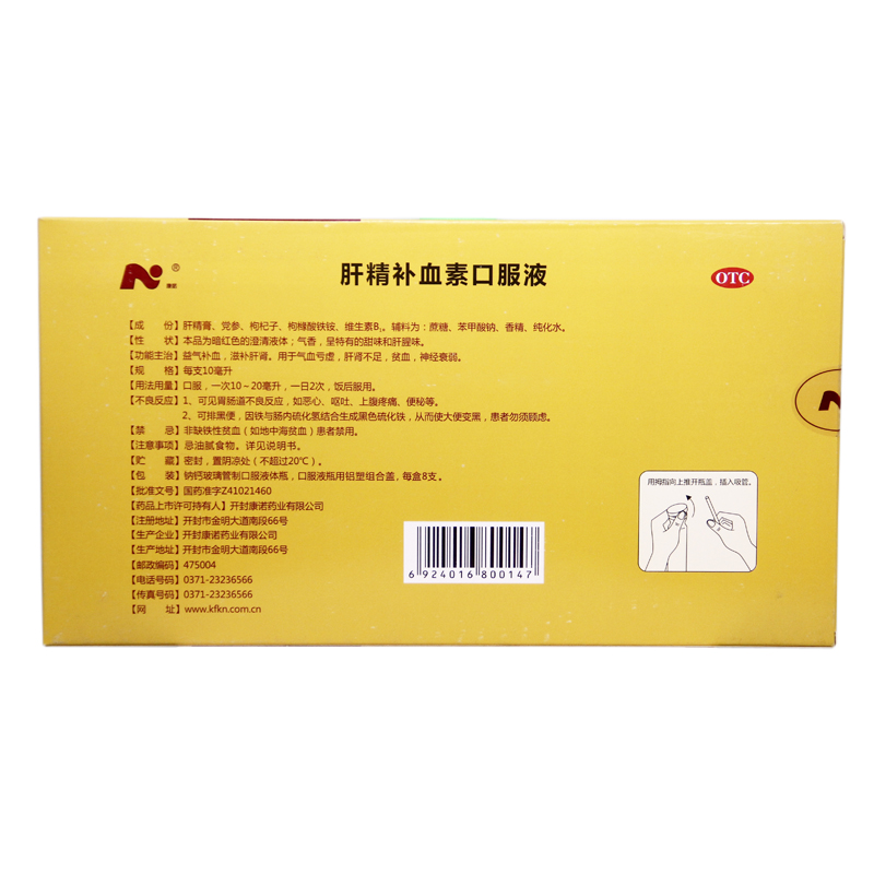 Kangnuo Liver Essence Blood Tonic Oral Liquid 10ml*8pcs/box OTC 康诺 肝精补血素口服液 10ml*8支/盒 OTC