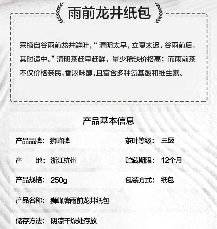 We are privileged to offer Shi Feng Long Jing directly from famous Long Jing tea manufacturer, Zhejiang Tea Group Co., Ltd. The brand was founded in 1950. This authentic tea comes with its original packaging and 'Shi Feng' trade mark. The tea color is very clear and lightly green. When the tea is brewed, you can see the picking standard and not much tea dust or broken leaves. We hope that you will enjoy the full-bodied flavor of this remarkable tea. Appreciate the light yellow green tea color and unique fresh fragrance that gently develops over many infusions. A truly remarkable tea!