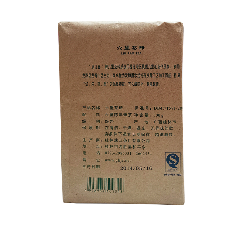 Liu Pao Rice Brick Tea * Guangxi Aged Liu Bao Tea Black Tea Dark Tea Brick 500g