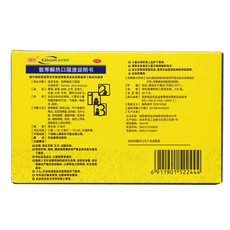 Rongzhou Oral Liquid for Dispersing Cold and Relieving Heat 10ml*6pcs/box OTC 戎州 散寒解热口服液 10ml*6支/盒 OTC