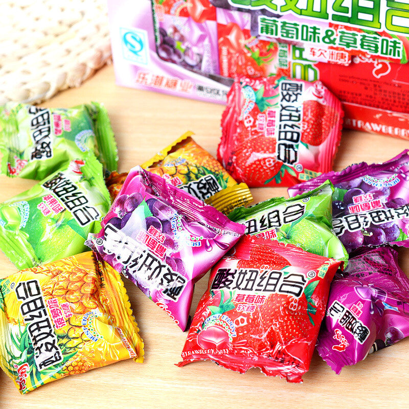 乐潮酸妞软糖组合混合水果味儿时糖果8090后怀旧零食 Chinese nostalgic snack Le Chao Sour Girl Gummy10g*40