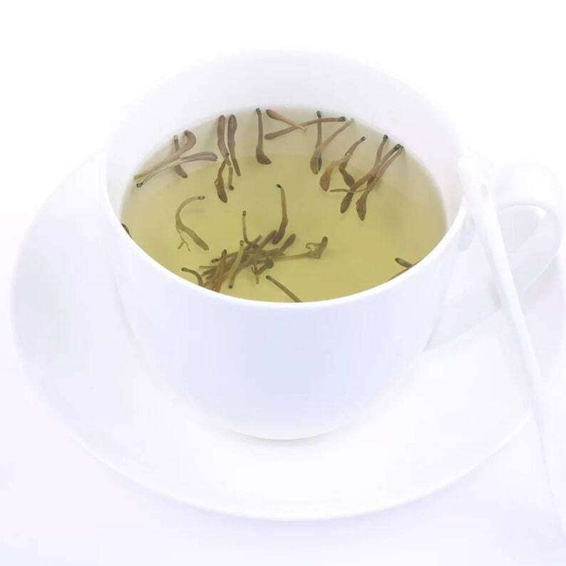 Jin Yin Hua tea has a bright yellow-green soup and a sweet, mellow taste. Honeysuckle tea has a slightly sweet and bitter taste when brewed, or you can add honey or sugar to honeysuckle tea to ease the taste.
