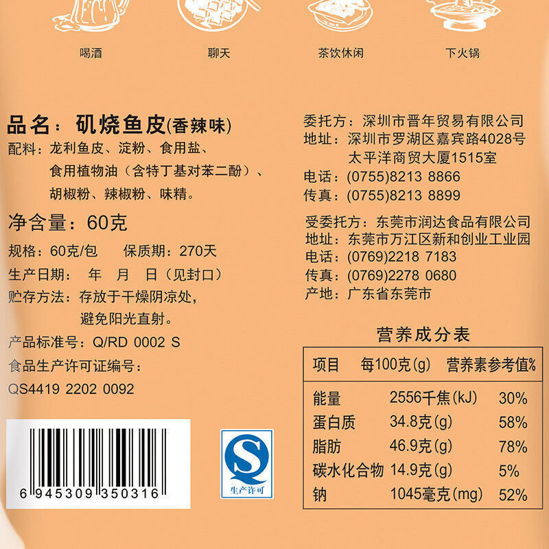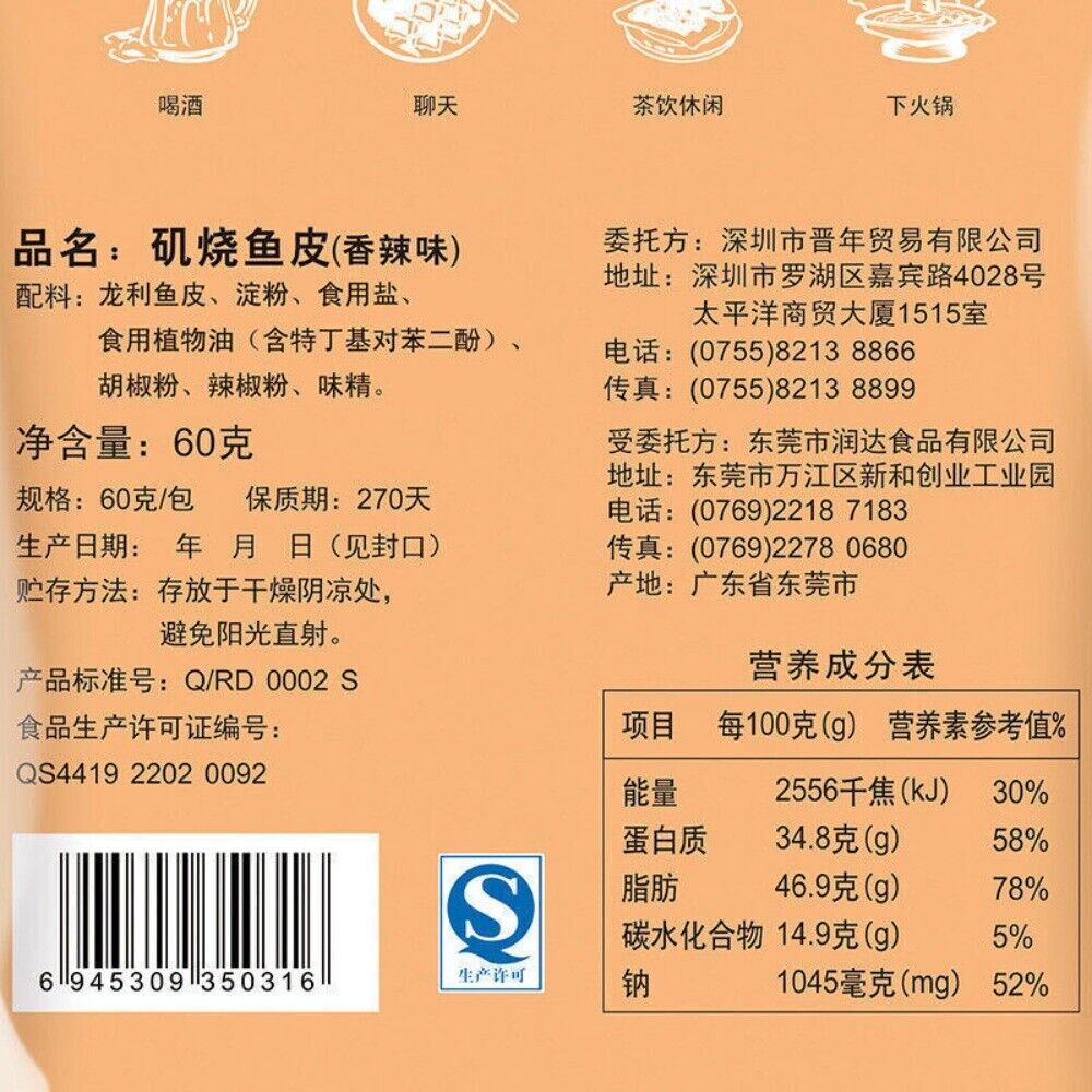 3 Packs Crispy Fish Skin 60g Spicy Chinese Seafood