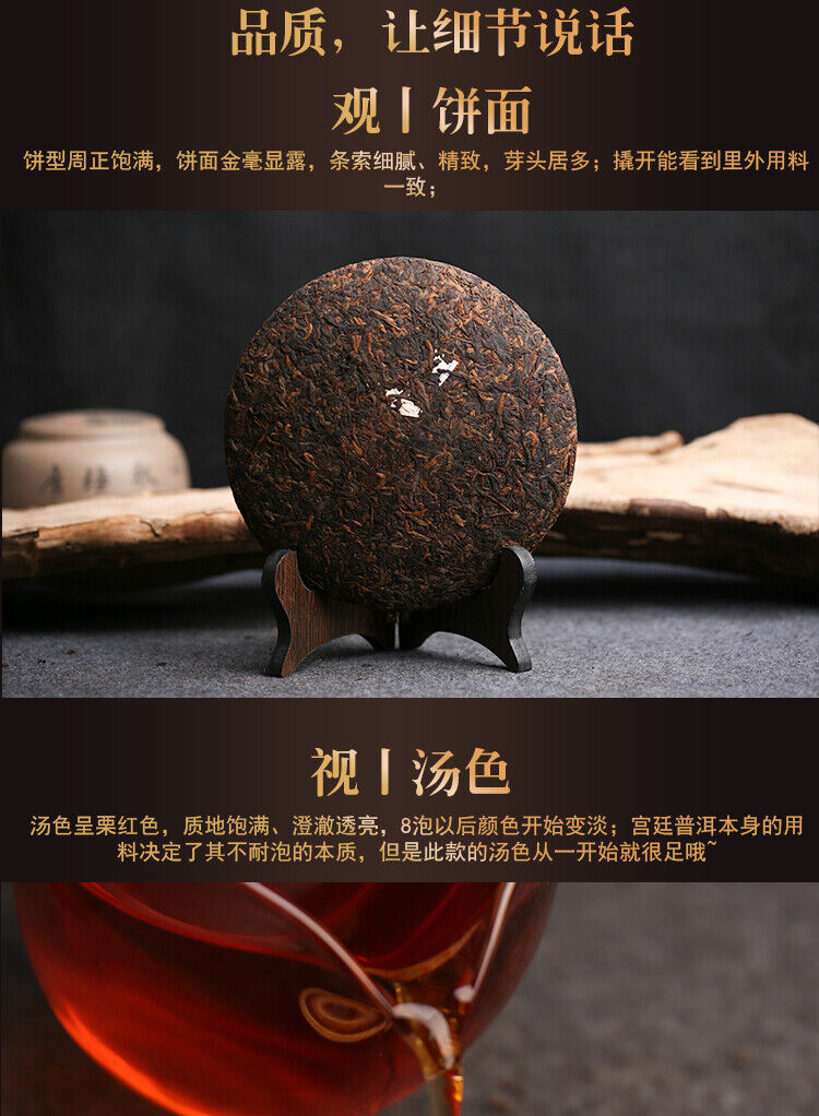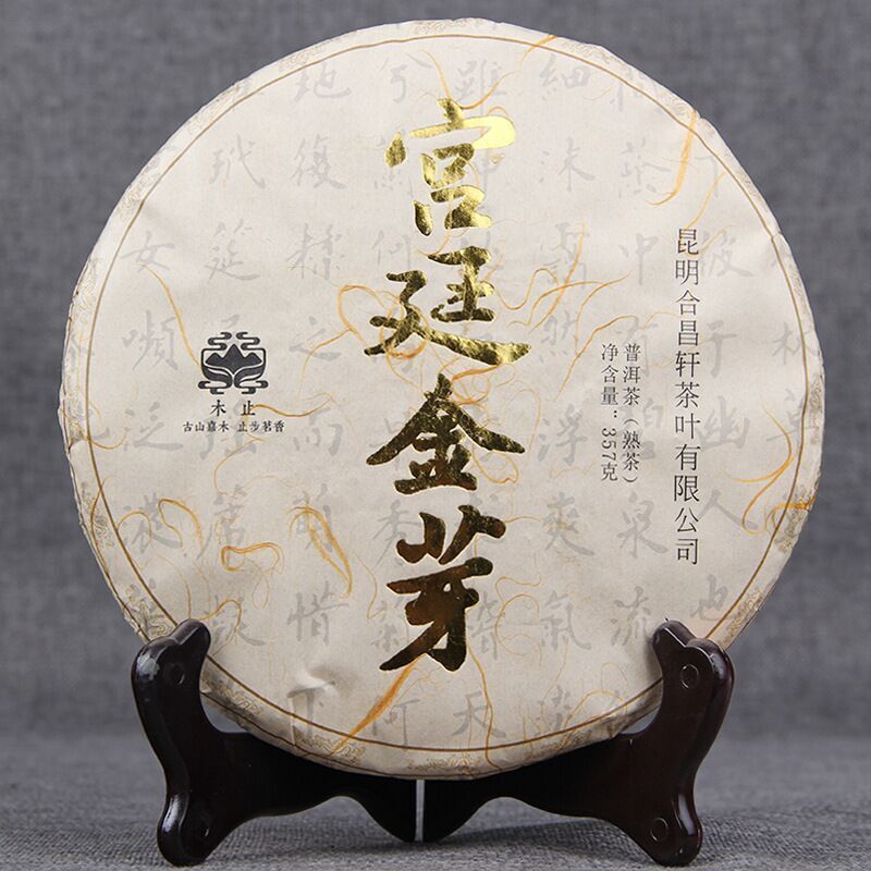 357g Ripe Dr. Pu'er Tea Royal Golden Needle Jin Zhen Gong Ting Pu-erh Cake