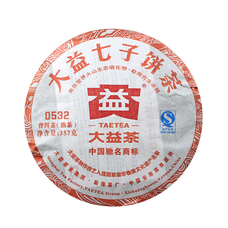 2012 yr Menghai Dayi (Taetea) 0532 Ripe Pu'er cake 357g Cooked Yunnan Puerh Tea Tea Type: Ripe cake tea Net weight: 357g/pc, Price for 1 pcs, Total 357g Production Date: 2012 Year, 201 batch Origin: Menghai,Yunnan,China Manufacturer: Menghai Tea factory,TAETEA Group. Pu-erh tea can be purchased as either raw/green (sheng)...