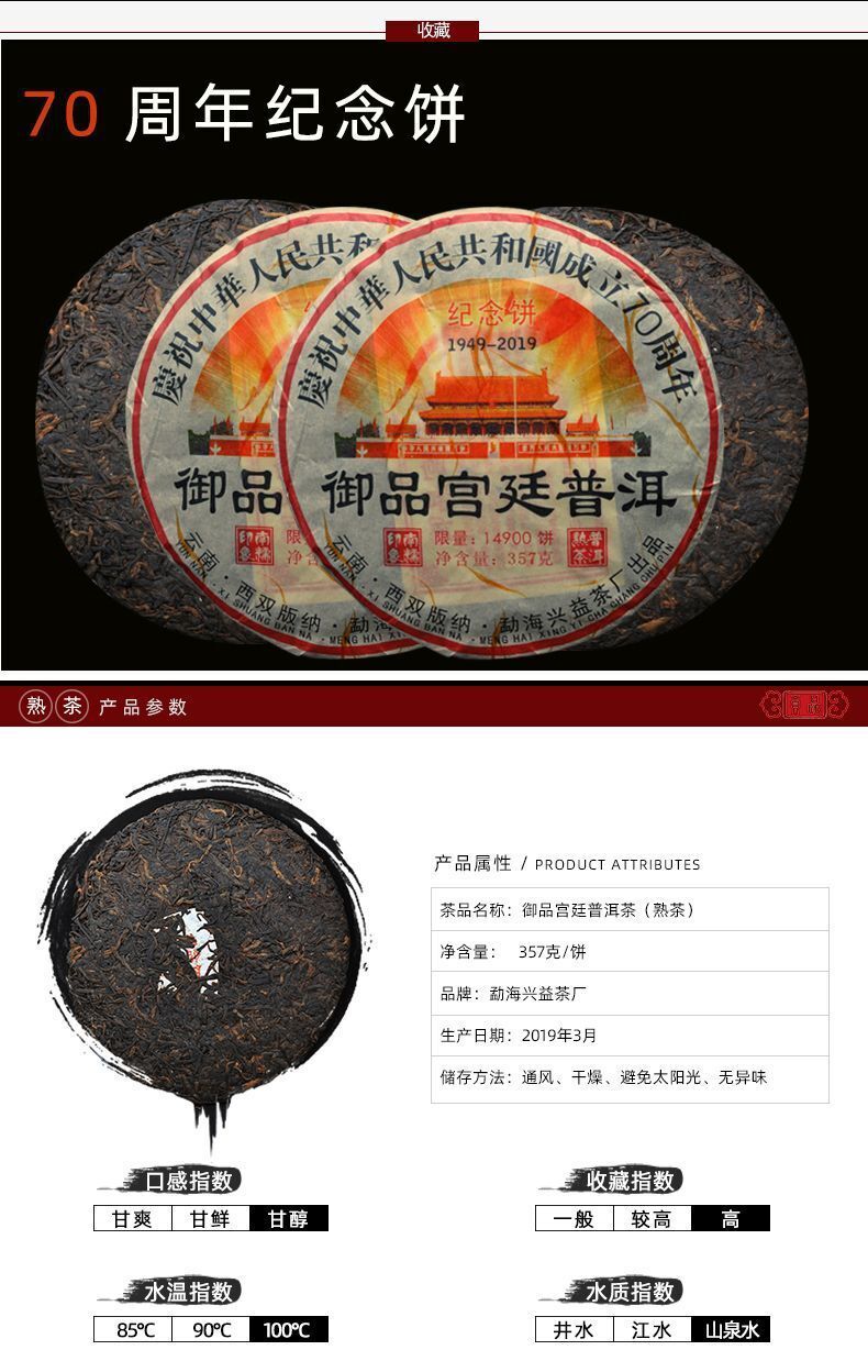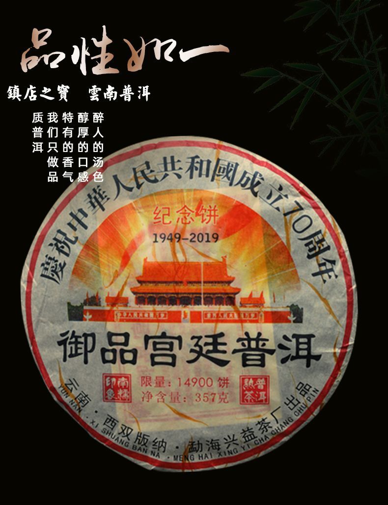 357g Yunnan Pu'er Tea Cake Menghai Pu'er Ripe Tea 2019 Imperial Palace Pu'er Tea