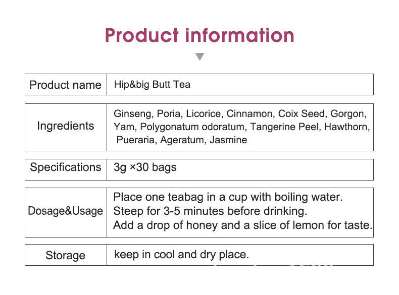 3g x 30 Bags Green Health Slimming Tea Herbal Hip Big Butt Enlargement Tea