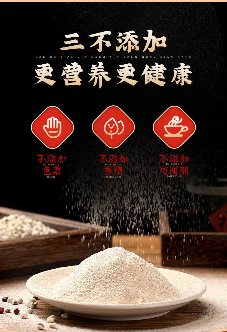 Selling method: packaging  Storage conditions: room temperature  Shelf life: 24 months  Formulation:Powder  Storage method: room temperature  Production date: see the package  Packing:Barrel  Production Licence Number:SC11341019200073  Packing specification:500g/can  Food category: meal replacement powder  Net content (specifications):500g  Sugar content:Yes  Main nutrients:red bean Job's tears