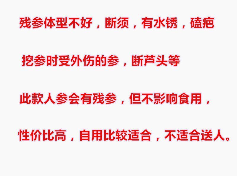 品牌:其他家 参种类:生晒参/白参 人参形状:整枝 特产品类:长白山人参 净含量:500g 包装方式:袋装 产地:中国大陆 省份:吉林省 生产日期:2024-09-02 保质期:365天 产品剂型:片剂 是否为有机食品:否 适用人群:通用