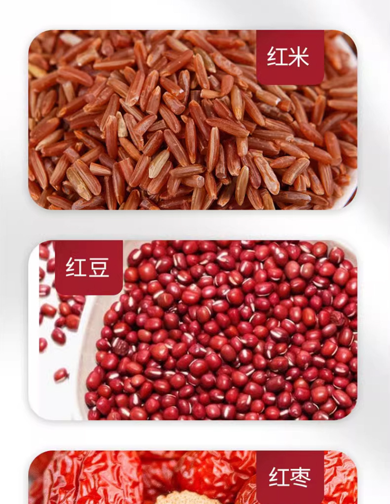 Product category: instant porridge Raw materials and ingredients: red beans, barley, etc. Storage conditions: normal temperature Shelf life: 360 days Origin: Shandong Storage method: sealed and stored in a cool, dry place Production date: within the past 1 week Production license number: SC11337091101737 Packaging specifications: can Net content (specification): 500...