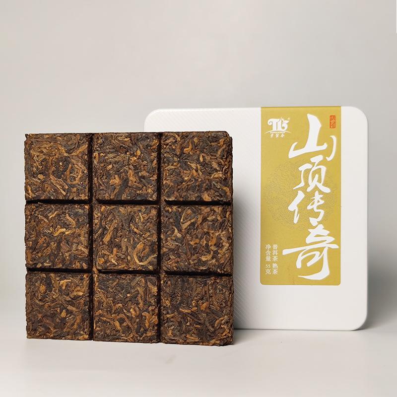55g Mountain Legend Pu-erh Tea Ancient Tree Ripe Brick Yunnan Sandalwood