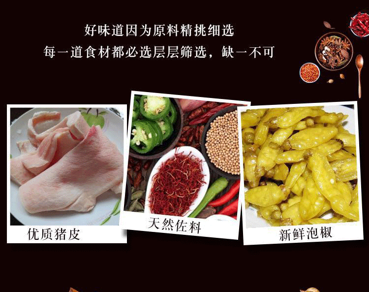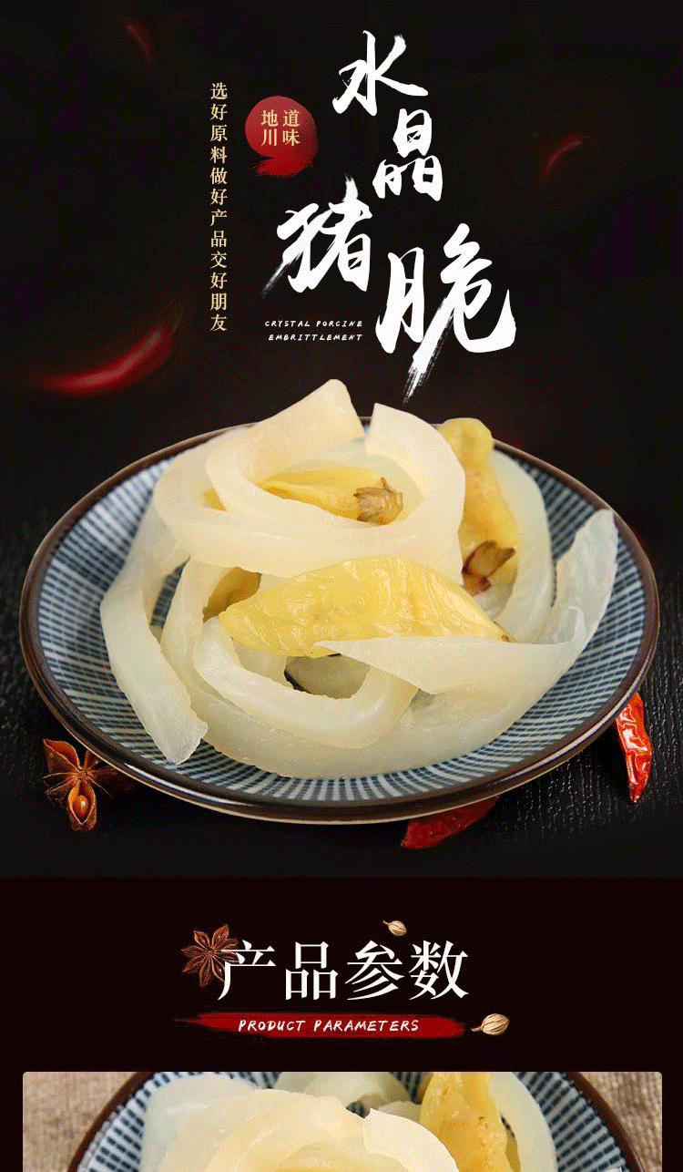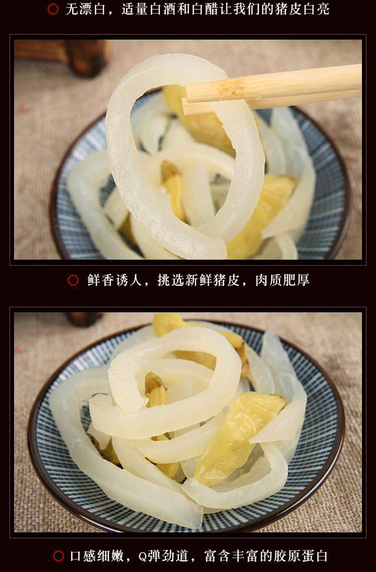 种类:猪皮 原料和配料:饮用水 辣椒 食用盐 产品类别:猪肉类 原产地:四川 产品标准号:GB/T23586 储藏方法:干燥通风处 制作工艺:腌制 包装系列:组合系列 包装规格:90克猪皮 商品条形码:6954750700137 净含量(规格):90g 产地:180天 品牌:品味缘 货号:90克猪皮 售卖方式:包装 特殊提货凭证:90克猪皮 热卖月份:全年 储存条件:常温 保质期:9个月 等级:合格