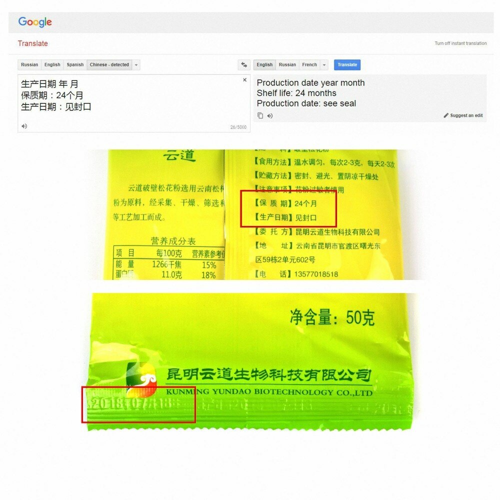 Lots Wild Harvested Shell-broken Pine Pollen Powder 99% Cracked Cell Wall About Pine Pollen Powder: Pollen of the pine tree is the sperm cells from the stamen of the pine trees, and is the origin of the pine tree, assume the task of the repeoduction of the pines. It has the characteristic of the singleness and pure quality, stable ingredients, and no residue of any pesticides, or any kinds of the zoohormone. Compared to any other pollen, it has better taste, and slight fragrance when taking, so has been called "the king of pollen" and really deserves the reputation of "the flower of dragon, the spirit of flower, and the origin of beauty". Ingredient: Wild Harvested Shell-broken Pine Pollen Directions for Use: Internal use: Once every morning and evening, 5-10g every time with honey, children could reduce the amount. External use: Once every morning and evening, get it for 5-10g, stir it up with the clear water and daub it on the face, wash it away with clean water 10-15 minutes later. Origin: Yunnan, China Net Weight: Appr. 50g/bag, Please Note / Date of Production Regard to the Expiration Date of this pine pollen powder, the date on the package is the date of production, it is not the 'Best Before' date. Please find the translation of google translator from the following pictures. ![]() ![]() ![]() ![]() ![]()