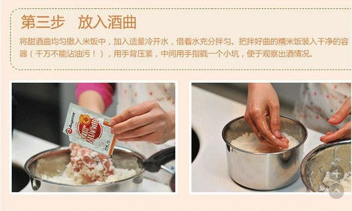1. Stir up the wine and make sure it's cool. Otherwise, hot glutinous rice will kill the mold. The result is either sour or not.