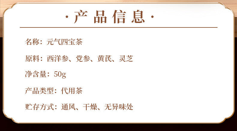 American Ginseng, Astragalus, Codonopsis ,Ganoderma Vitality Four Treasures Tea