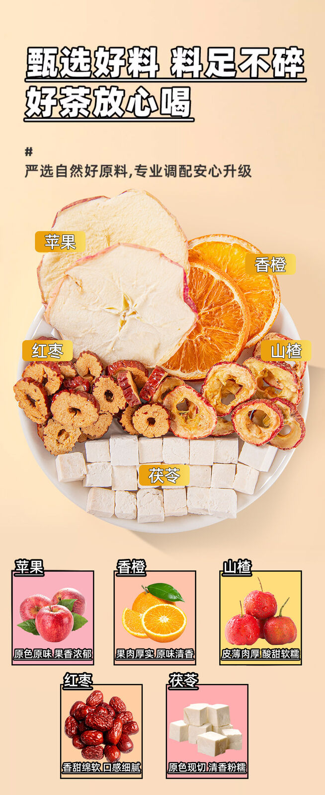 Apple Hawthorn Poria Fruit Tea with Dried Apple,Hawthorn,Poria and Orange Slices