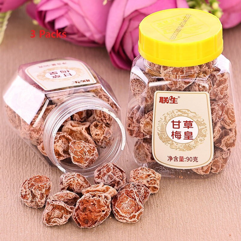 3 Preserved Dried Plum Sour & Sweet Chinese Specialty Asian Food Fruit SnackLianshen Preserved Plum Snack (90g / 3.17 Oz)- 3 Packs