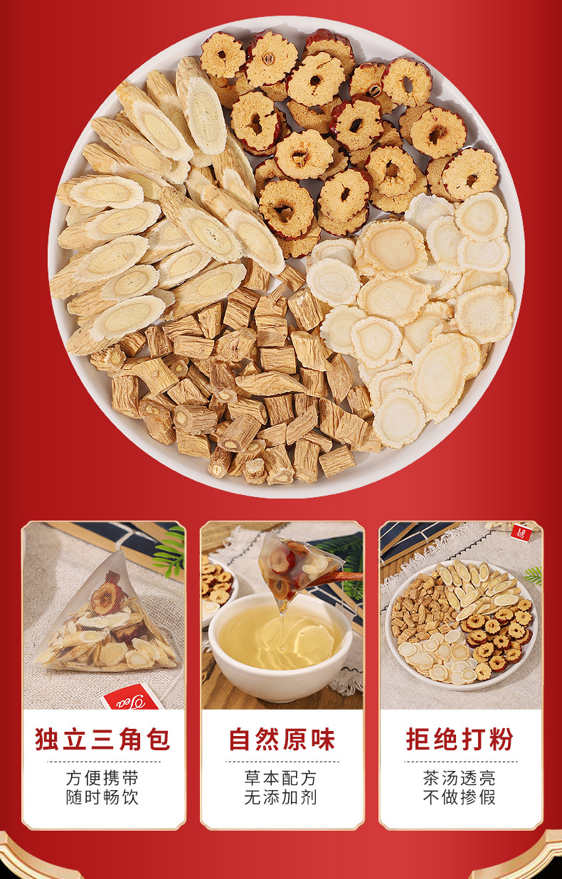 Astragalus Ginseng Herbal Tea for Energy Vitality Four Treasure Tea Ginseng