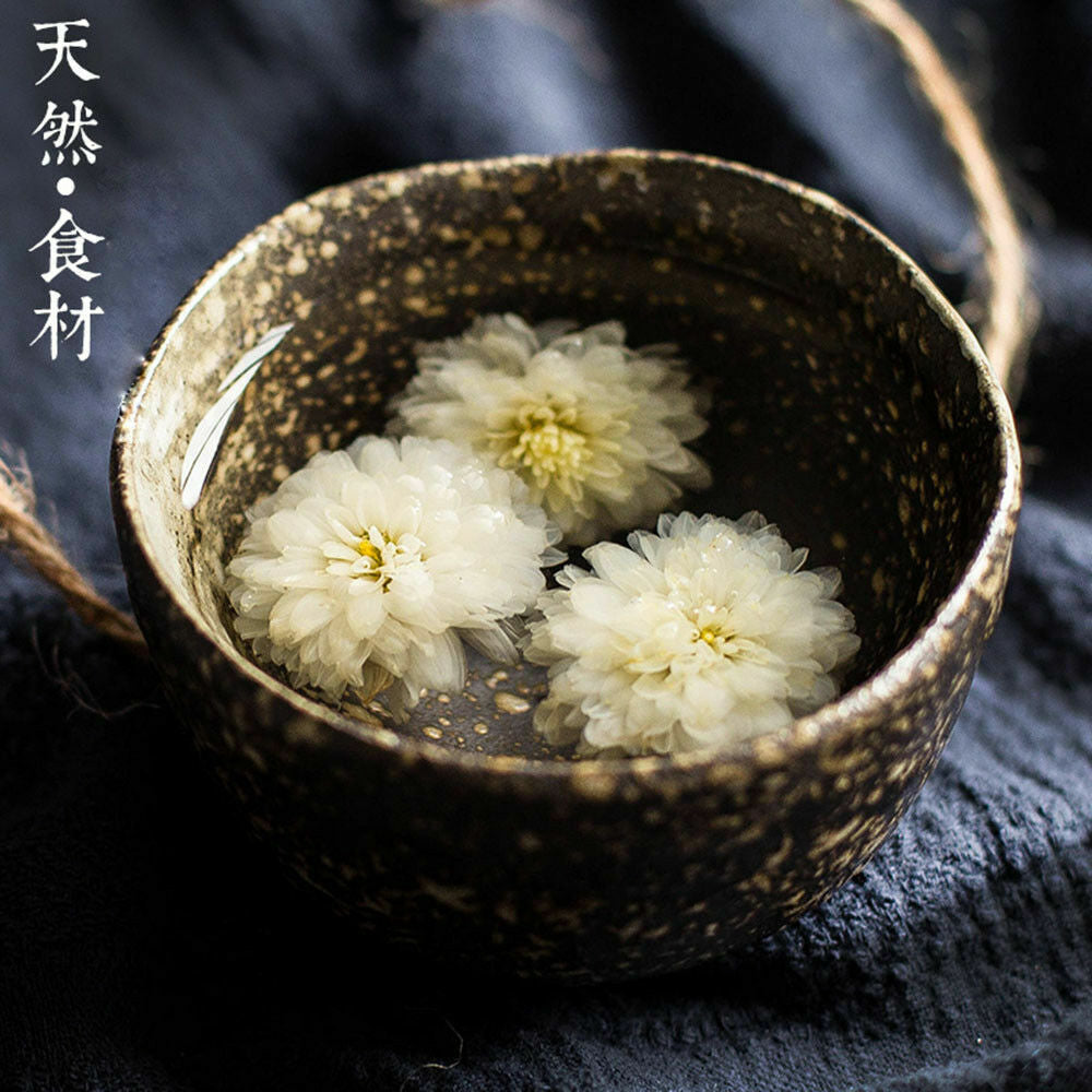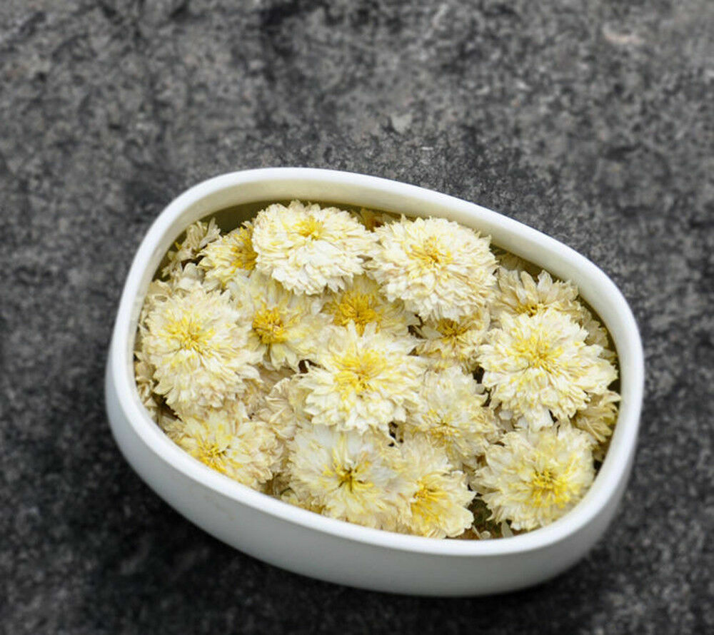 Tribute Chrysanthemum tea is from Yellow Mountain of China, it's a flower-based tisane made from chrysanthemum flowers of the species Chrysanthemum morifolium or Chrysanthemum indicum, which are most popular in East Asia. Tribute Chrysanthemum tea has adenine, choline, vitamins A, B, amino acids, glycosides, volatile oil and more. It is a high class drink. The resulting drink is transparent and ranges from pale to bright yellow in color, with a floral aroma. It is a nerve energizer, detoxifier and blood vessel softener in Chinese medicine to maintain healthy cholesterol level, normal blood pressure, improve blood flow. Used to "sharpen the vision and hearing, calm the nerves and clear the brain", it remains one of the most important supplementary food items and longevity elixirin China. It is an ideal beverage for cold and flu season, and for general health.