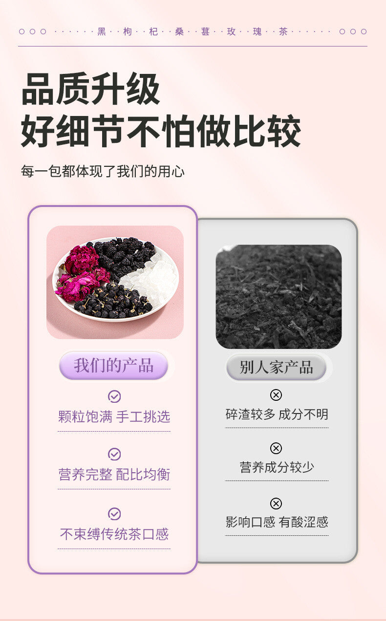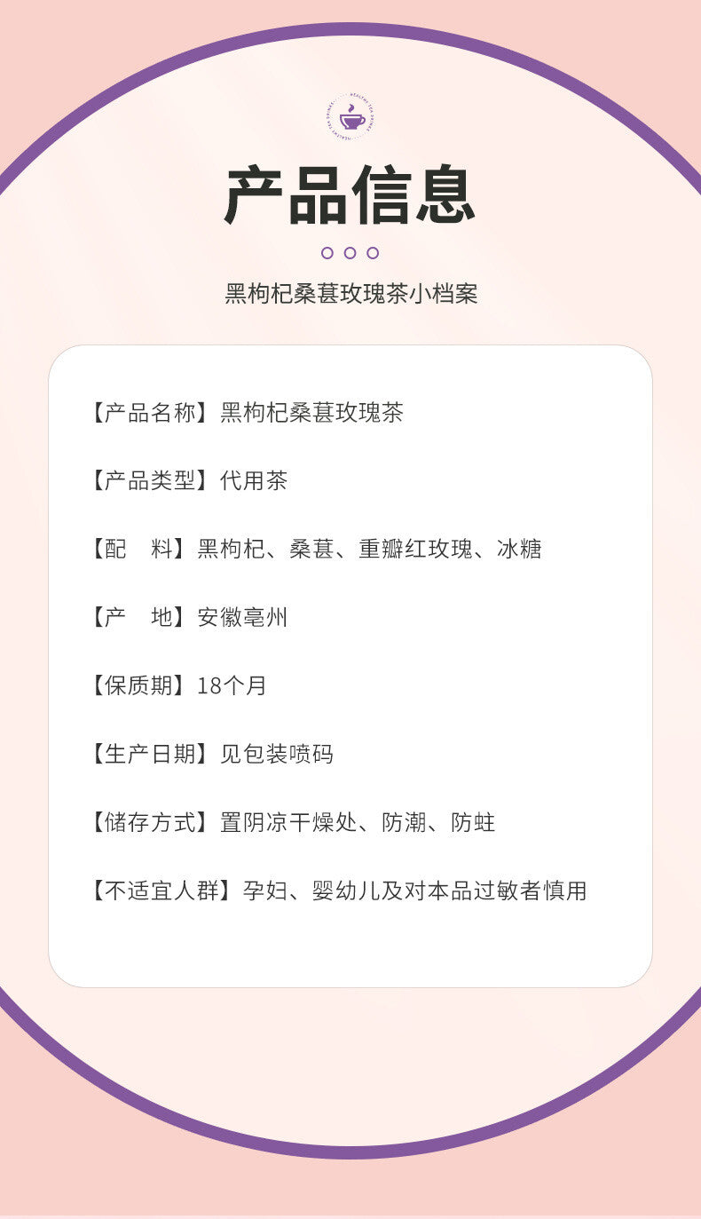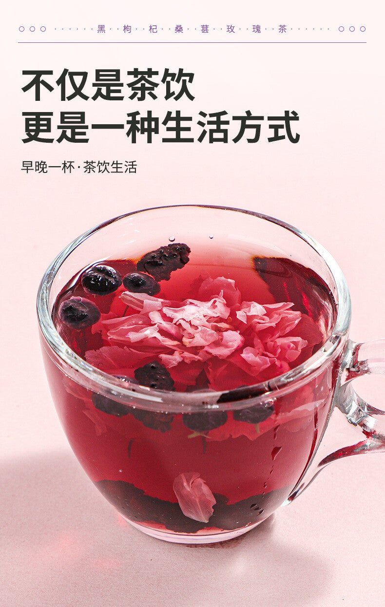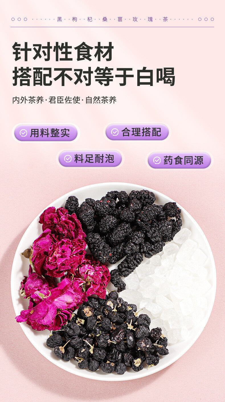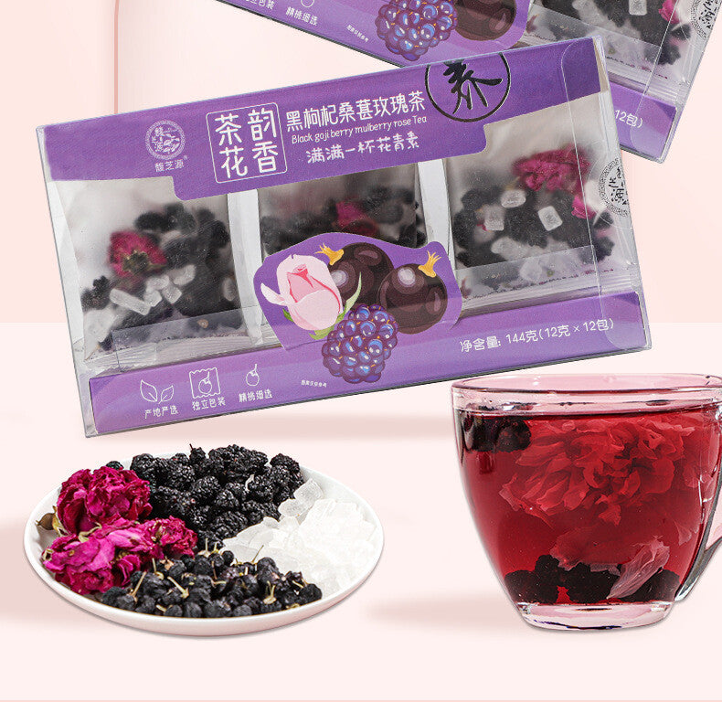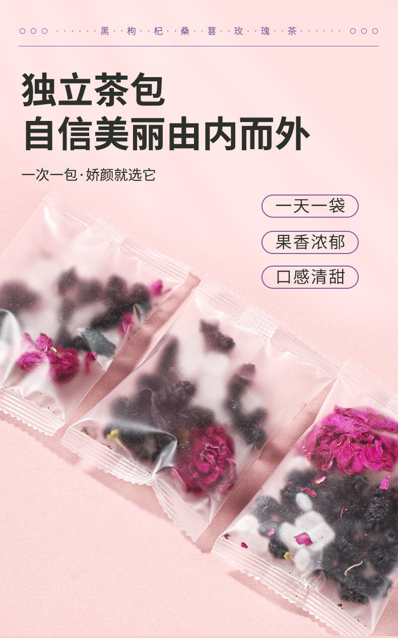 Black Goji Berry Mulberry Rose Herbal Tea Bags Anthocyanin Rich Health Drink