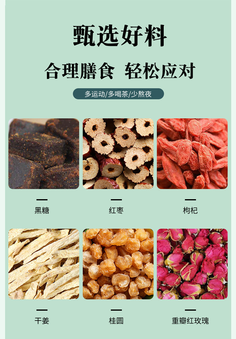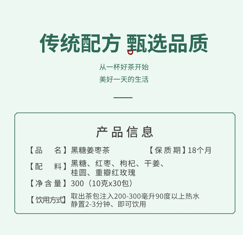 Black Sugar Ginger Date Tea 300g/30 Packs – Longan, Red Dates, Rose Tea