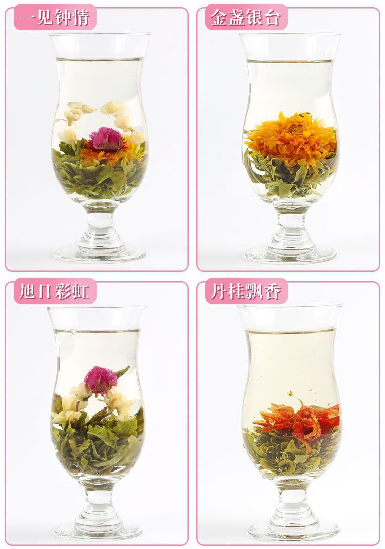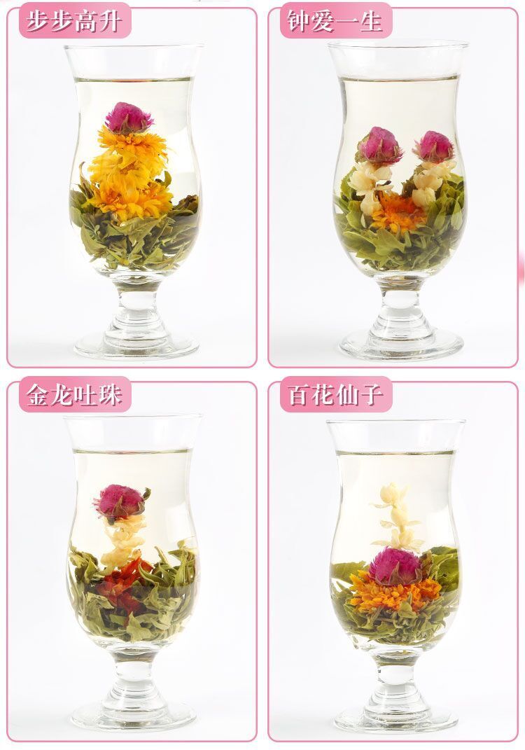 Product name: China Tea 18 Pieces Blooming Tea Different Flower Tea Handmade Flower Chinese Flowering Balls.Herbal Flowers Gift Packing Packaging: Box Type: Green Tea / Herbal --- Each Ball is about 7.5g. Total Weight: 135g. Season: This Year Harvest Season. A delicate flower blooms inside this ball tea just before tiny flowers slowly cascade upward like Champagne bubbles. The flowers add their enlivening fragrance and strong taste to this delectably smooth green tea. Our Ball offers one of the most artful spectacles in tea. This blooming tea has an original shape of an tiny ball and when put in boiling water a bouquet of tea leaves and flower. The aromas of both flowers and tea leaves are very well preserved and these exceptional teas develop a wonderful flavor and create at the same time a beautiful "table decoration". Once dropped into a glass of hot water, this ball tea unveils a broad flower followed by the sudden eruption of a flower plume, which is actually flowers sewn together end to end. The golden liquor yields a full-bodied flavor intensified by the large medicinal bloom. Let the the blooming tea brew for at least 10 minutes, a longer brewing time will not spoil the tea, on the contrary, the flavour will rather improve. One piece of blooming tea can be used twice with approximately 5 to 6 dl water each time. 100% natural, no additives. We shall pick popular types of blooms for you from our Blooming tea selections randomly. *****Chinese Artistic Teas, which are also called Blooming Teas, Artificial Teas or Artistic Teas, are all made by hand with the most complicated technology. It is a newly-innovated special green tea, which features unique appearance, splendid infusion view, lingering flower scent mixed with tea flavor and various health benefits such as delaying the ageing of cells, whitening the skins, improving immunity, etc. The tea is made of the highest grade special green tea of fresh spring crops and natural herbal flowers. |
