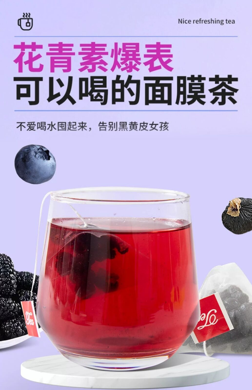 Blueberry, Mulberry & Black Goji Tea - Herbal Tea Bags for Women, Cold Brew
