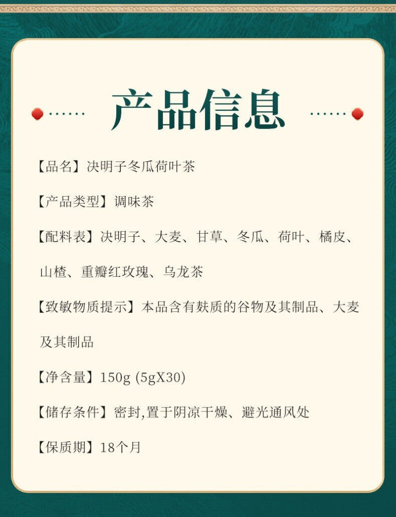 Cassia Seed, Wax Gourd & Lotus Tea - Herbal Detox Tea Blend 150g