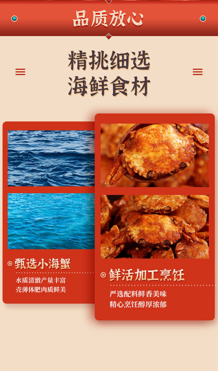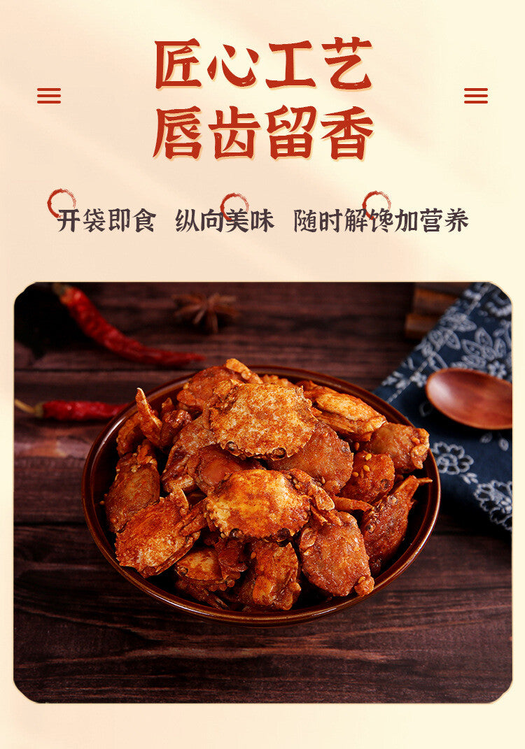Casual Snack Seafood Spicy Crab Ready-to-eat 250g 网红香辣小螃蟹香辣蟹即食250g甜辣海蟹休闲零食海产