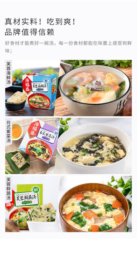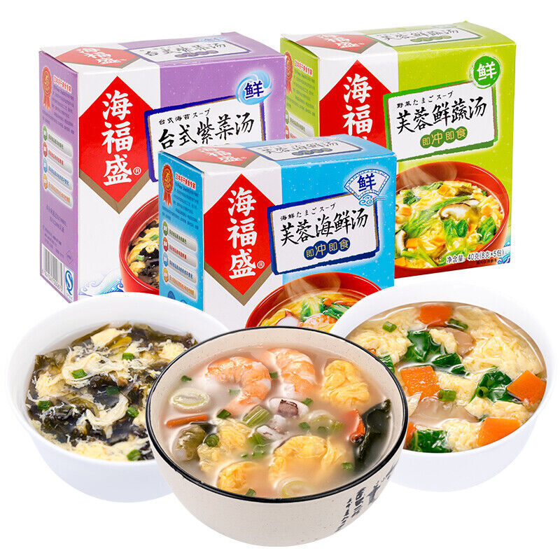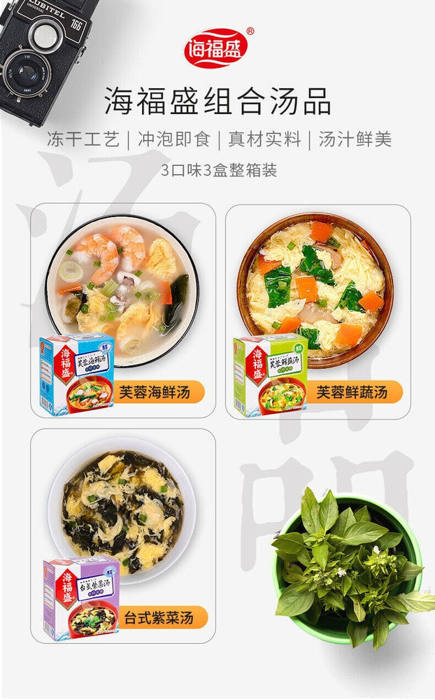 Chinese Food Snacks Instant Soup 零食中国食品小吃 冲泡即食速食汤料包 方便速溶汤 海福盛 芙蓉鲜蔬/海鲜/紫菜 3盒*40g