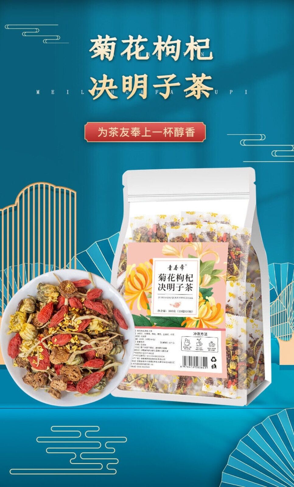Chrysanthemum Goji Cassia Herbal Tea 100g 10gx10 Packs Wellness Blend
