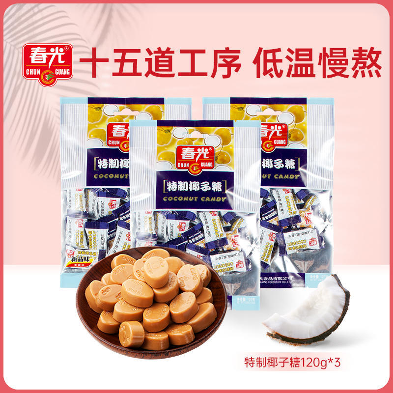 春光食品特制椰子糖120g*3袋 海南特产糖果量小易携带装 Chun Guang Foods Special Coconut Candy 120g*3bags