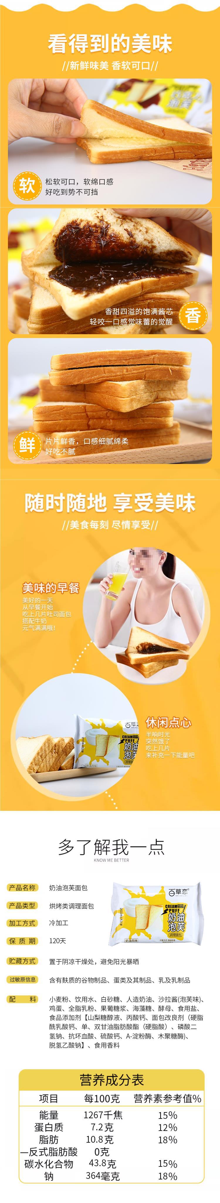 Cream Puff Chocolate Toast Bread Milk Cream Filling Breakfast Snack