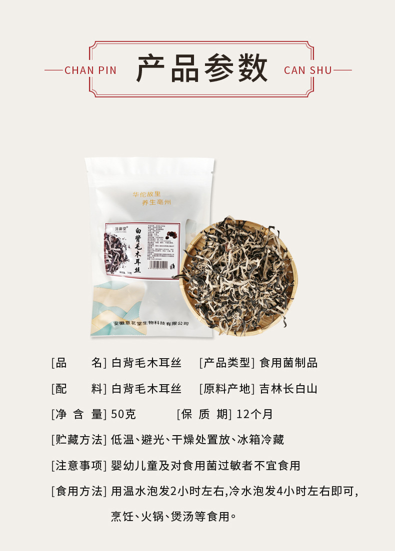 Dried Black Fungus Strips, White Back Wood Ear Mushroom, Jilin Specialty