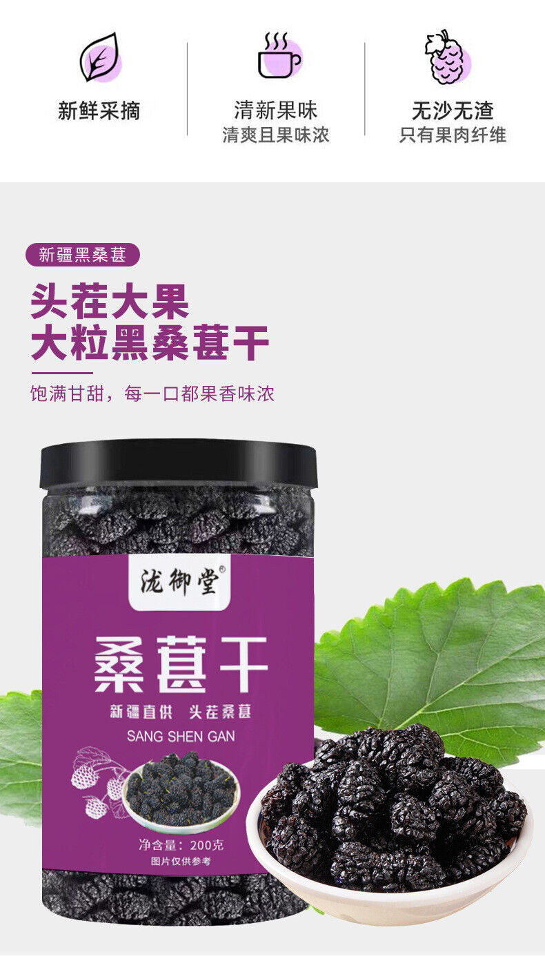 Dried Mulberry Fruit Tea No Wash 200g Jar Healthy Snack Black Mulberry Trendy