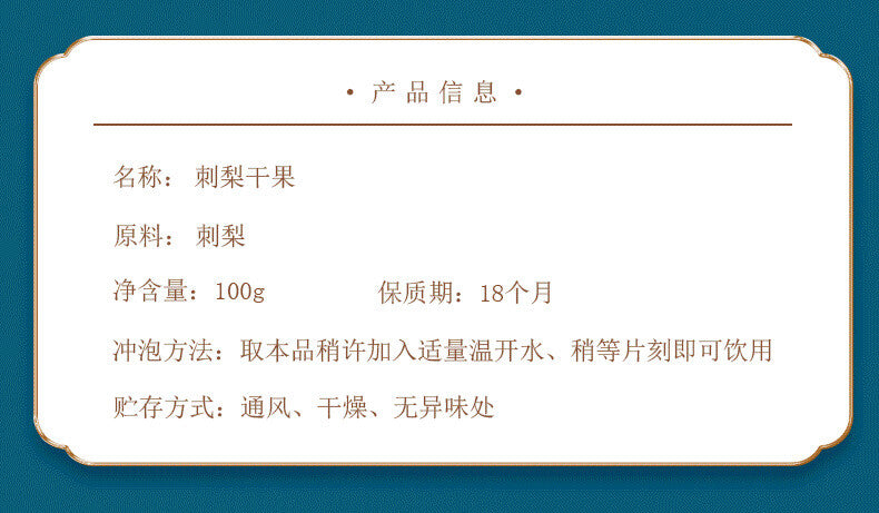 产品认证:否 原产地:安徽 产品标准号:详见外包装 储藏方法:密封 包装规格:流传金方刺梨干果100克(罐装) 是否为预包装食品:是 商品条形码:详见外包装 净含量(规格):100 是否含糖:无糖 品牌:流传金方 货号:5346545 适用场景:商用 售卖方式:包装 热卖月份:全年 原料与配料:刺梨 储存条件:常温 保质期:12个月以上 净度:99 食品工艺:冷泡 是否礼盒装:否 生产日期:持续更新 生产厂家:安徽流传金方健康产业有限公司 生产许可证编号:SC11434160230498 箱规:50瓶 是否进口:否 茶种类:养生茶
